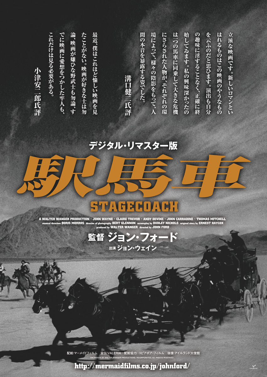 いわくありげな乗客を乗せアリゾナからニューメキシコまでひた走る駅馬車を舞台にドラマティックなエピソードを盛り込み、インディアンの襲撃や無法者との決闘までつめ込んだ娯楽アクション。音楽、脚本、撮影、俳優全てが完璧で筆舌つくしがたい面白さ。血湧き肉踊り、笑いと涙のフルコースで見るものをノックアウト!