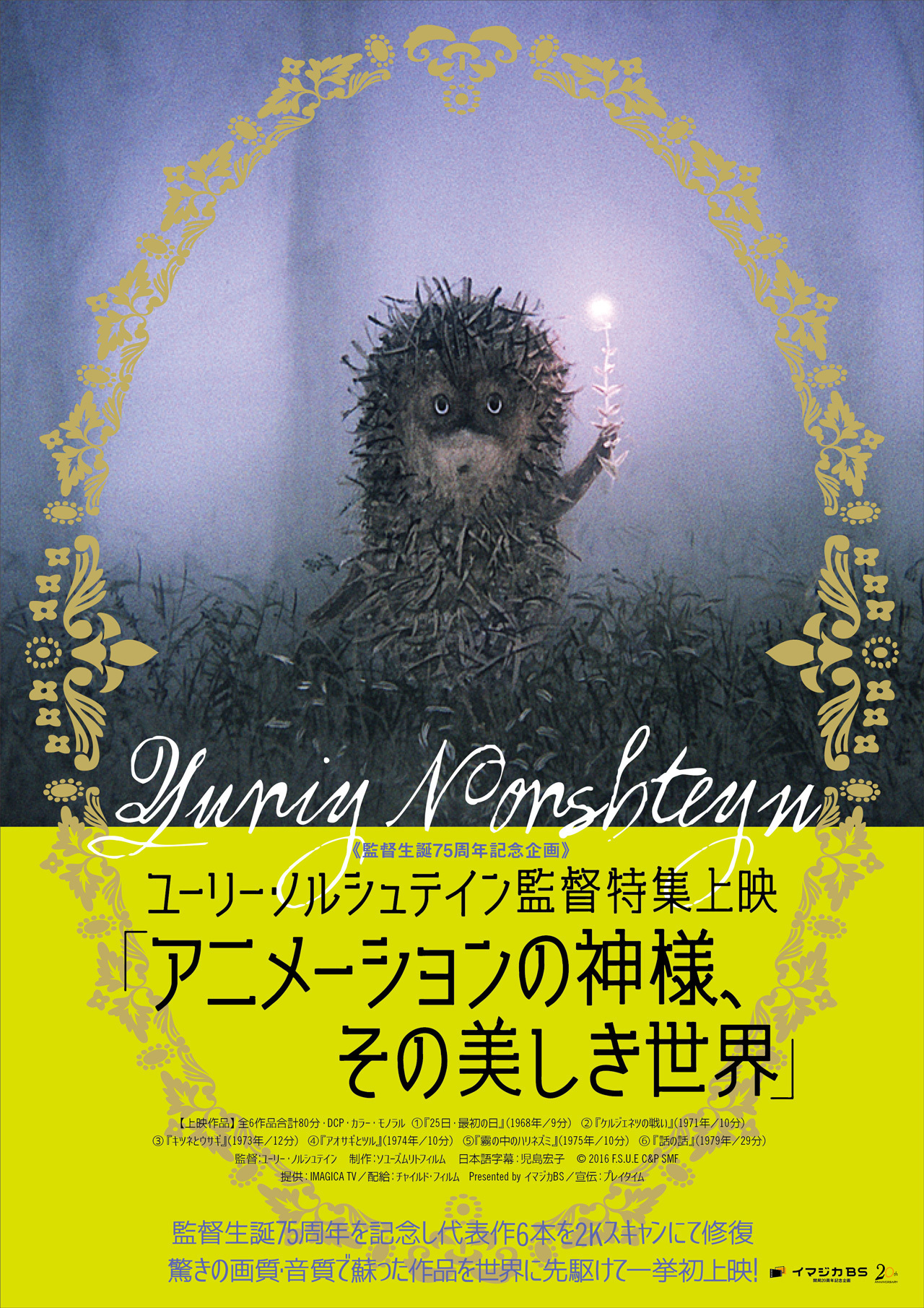 切り絵を用いた緻密な作風で知られるロシア人アニメーター、ユーリー・ノルシュテインは、文字通り“アート・アニメーションの神様”として、宮崎駿・高畑勲監督をはじめ、世界中のアニメーターからリスペクトされる存在だ。監督の代表的な6作品を世界初となるHD画質のデジタルリマスター(2K修復版)で公開。